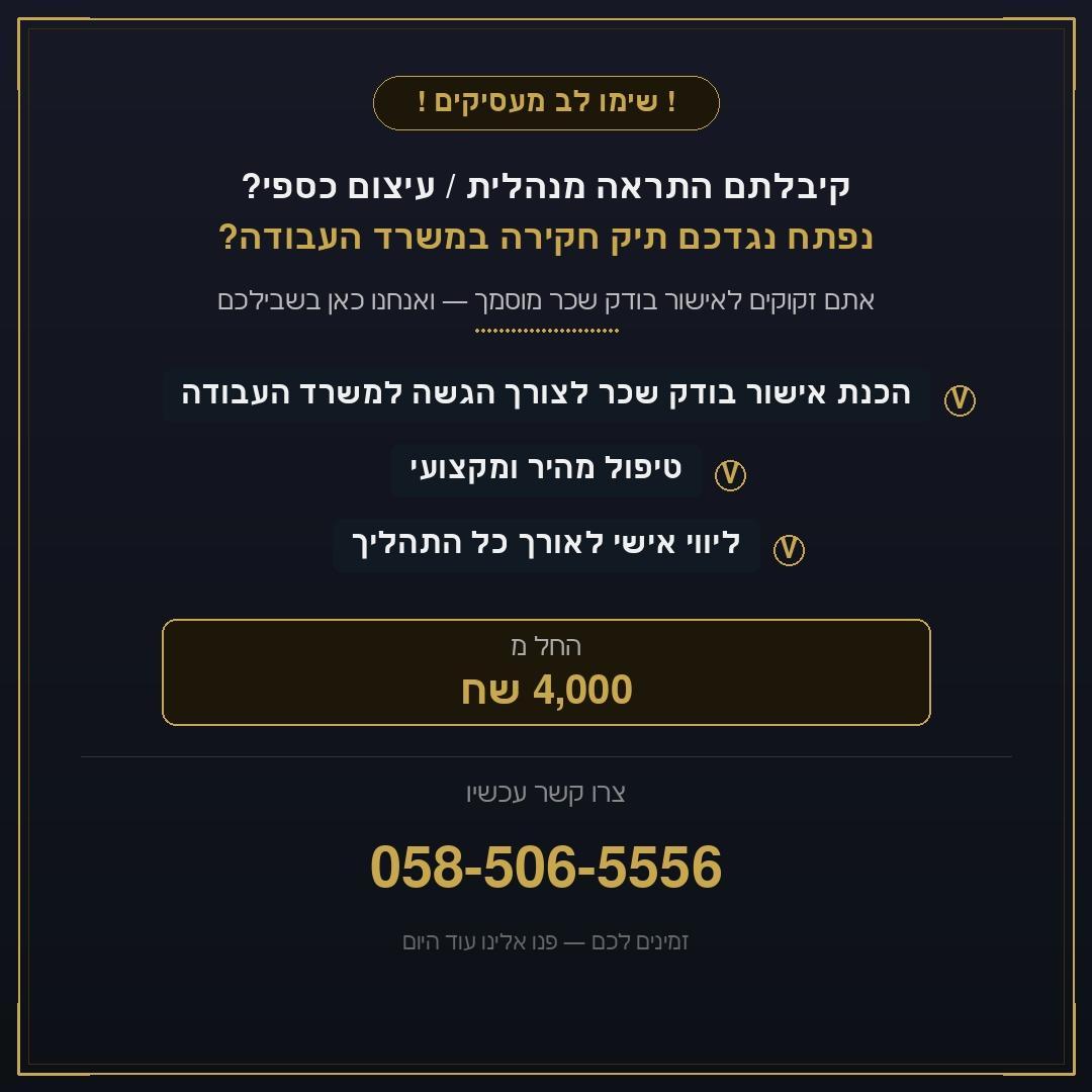 מתן אישור בודק שכר עבודה מוסמך לאחר ביקורת של משרד העבודה