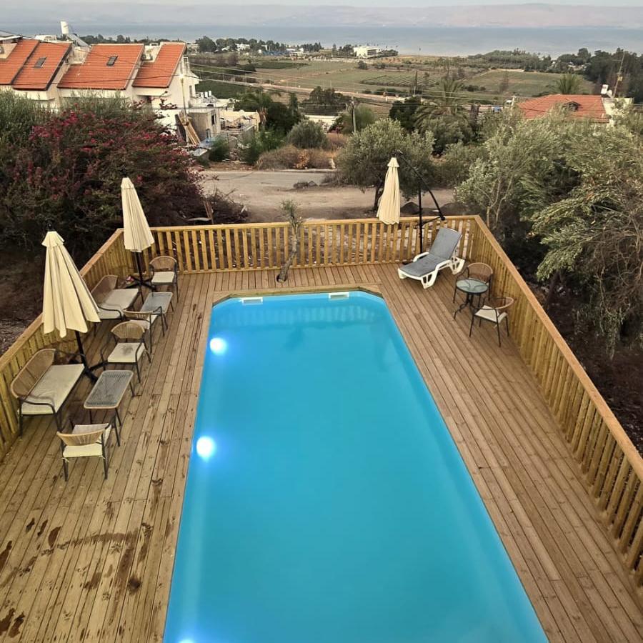 מתחם נופש גדול עם 21 חדרים עד 80 איש במושב מגדל כולל ברכה אולם פינות ישיבה
